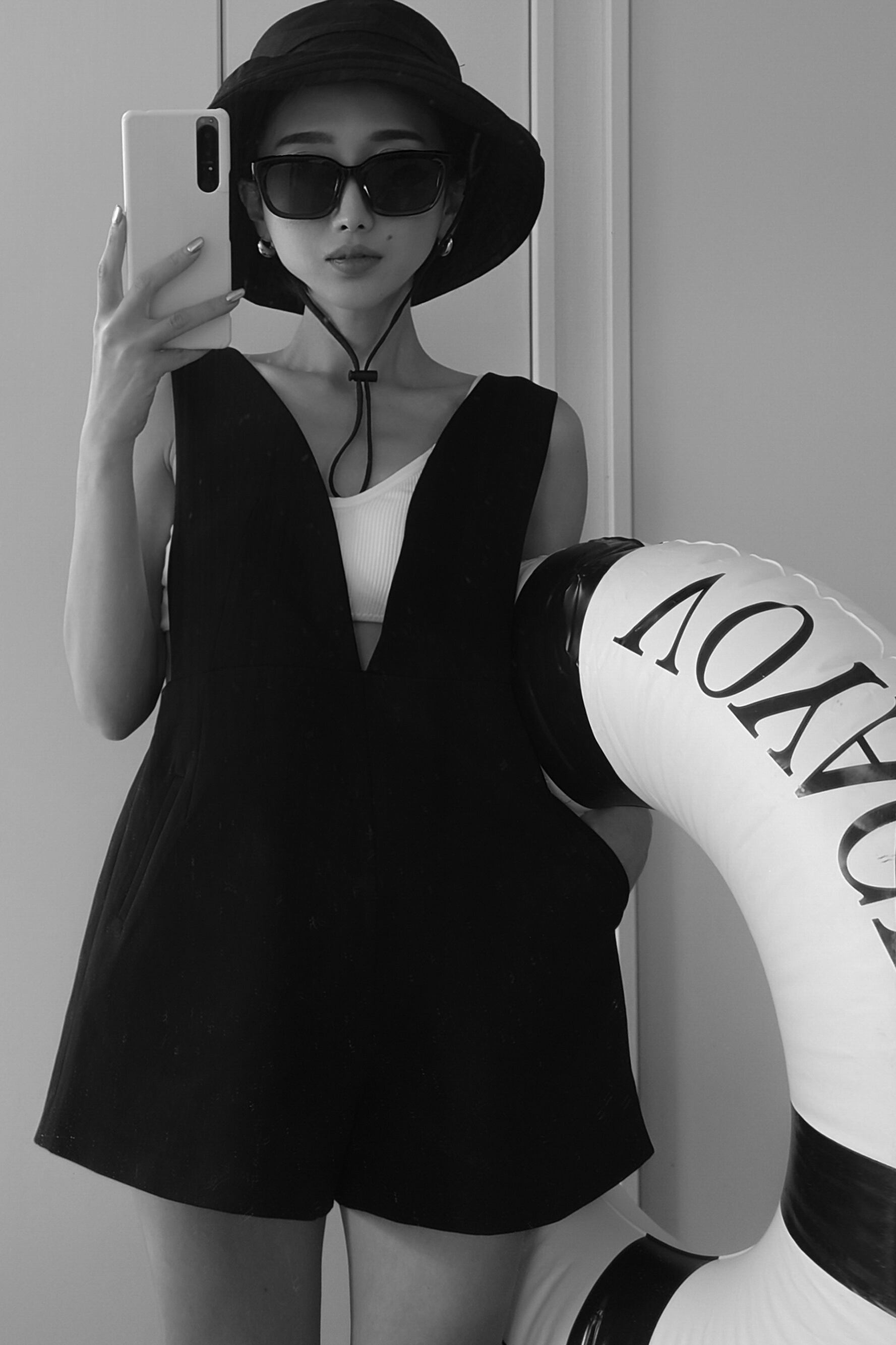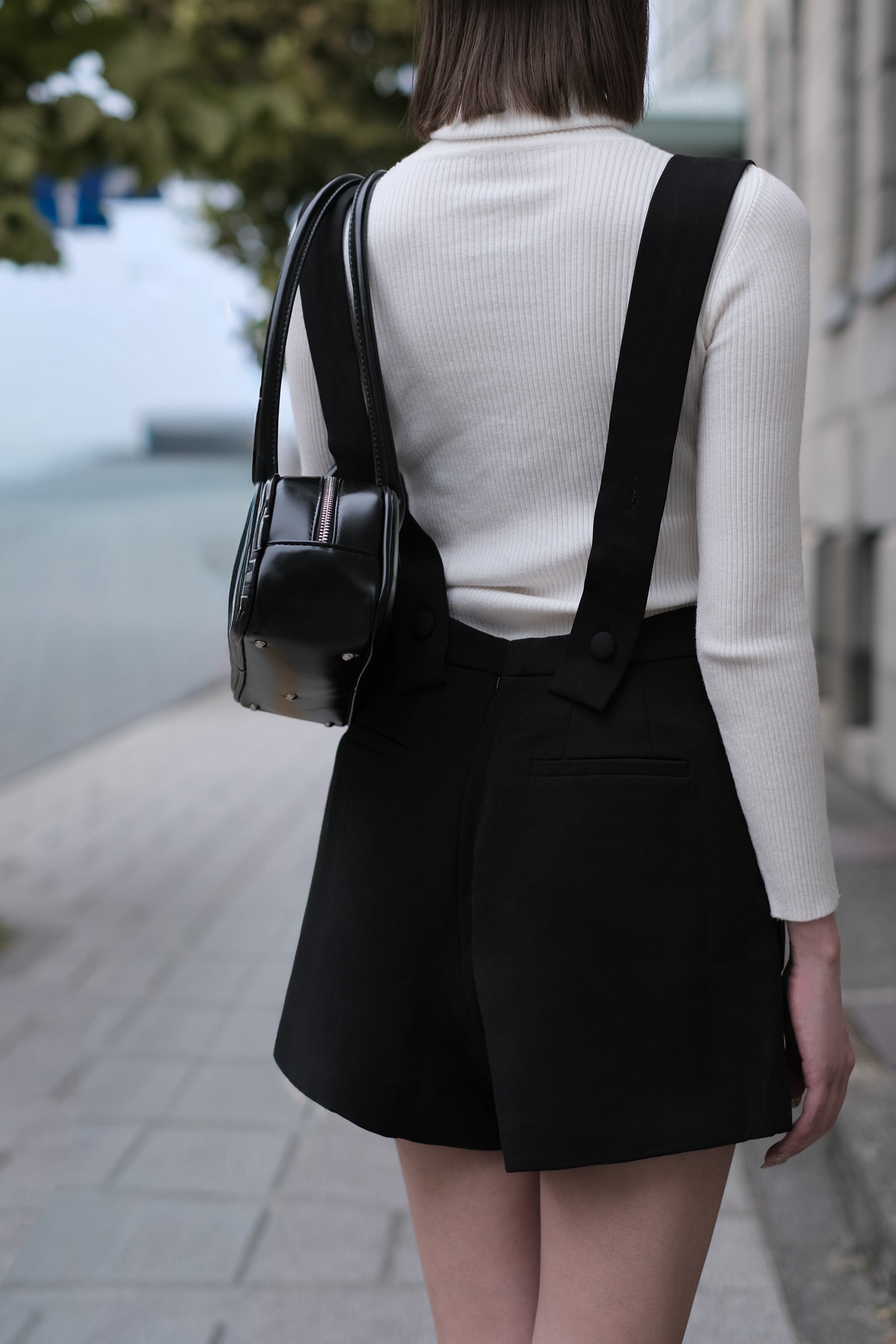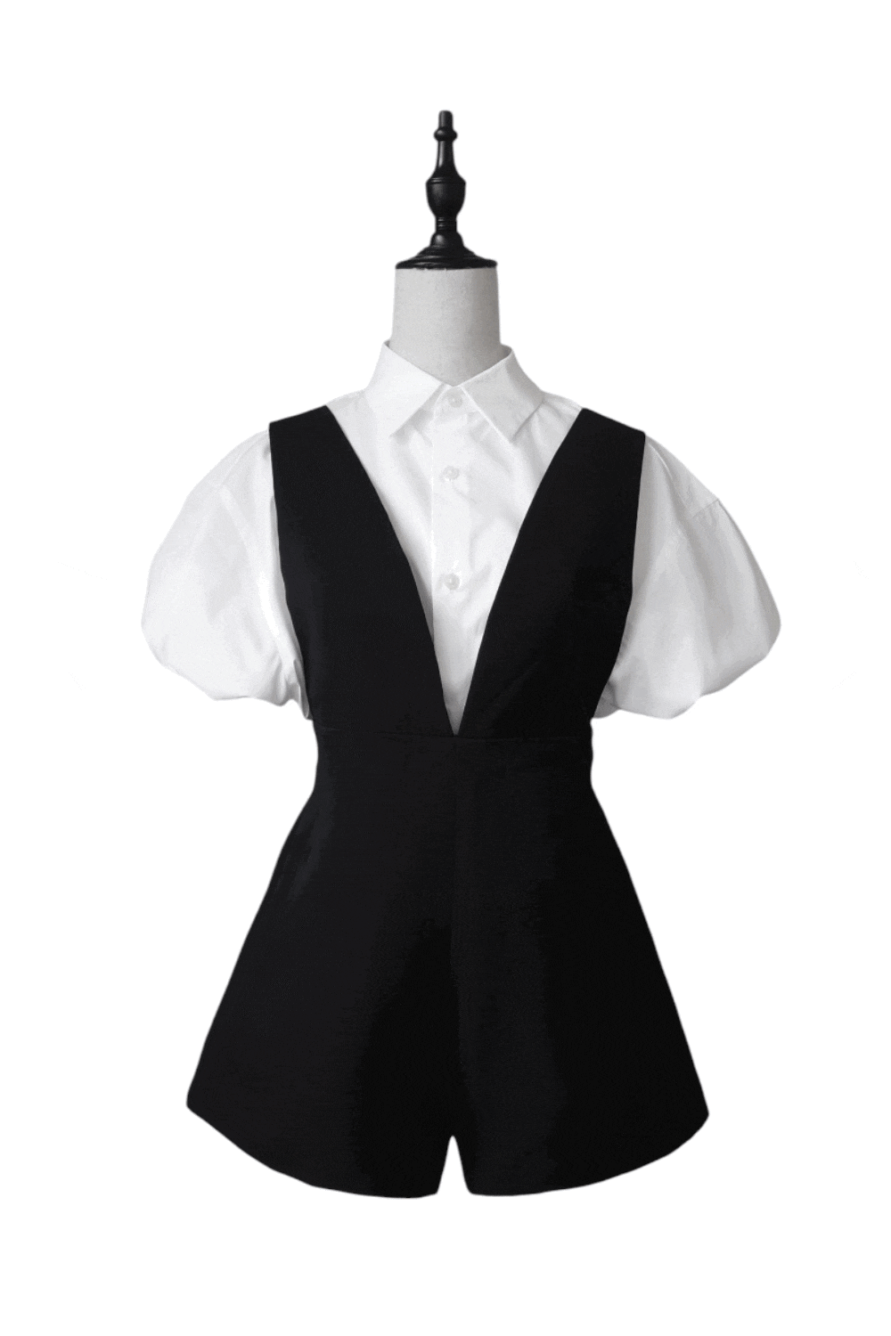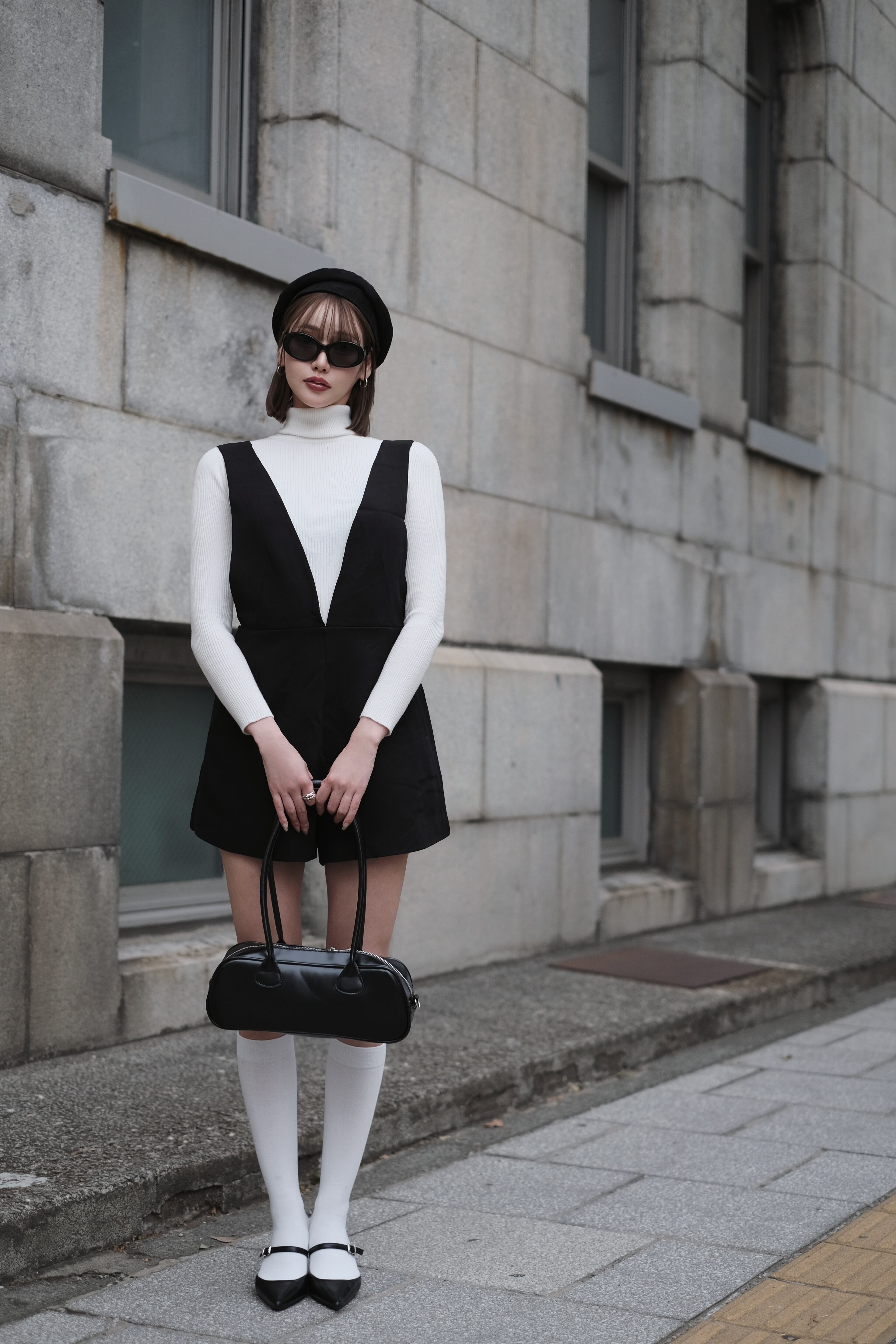 深めのVネックとショート丈の絶妙バランスが魅力のオールインワン。