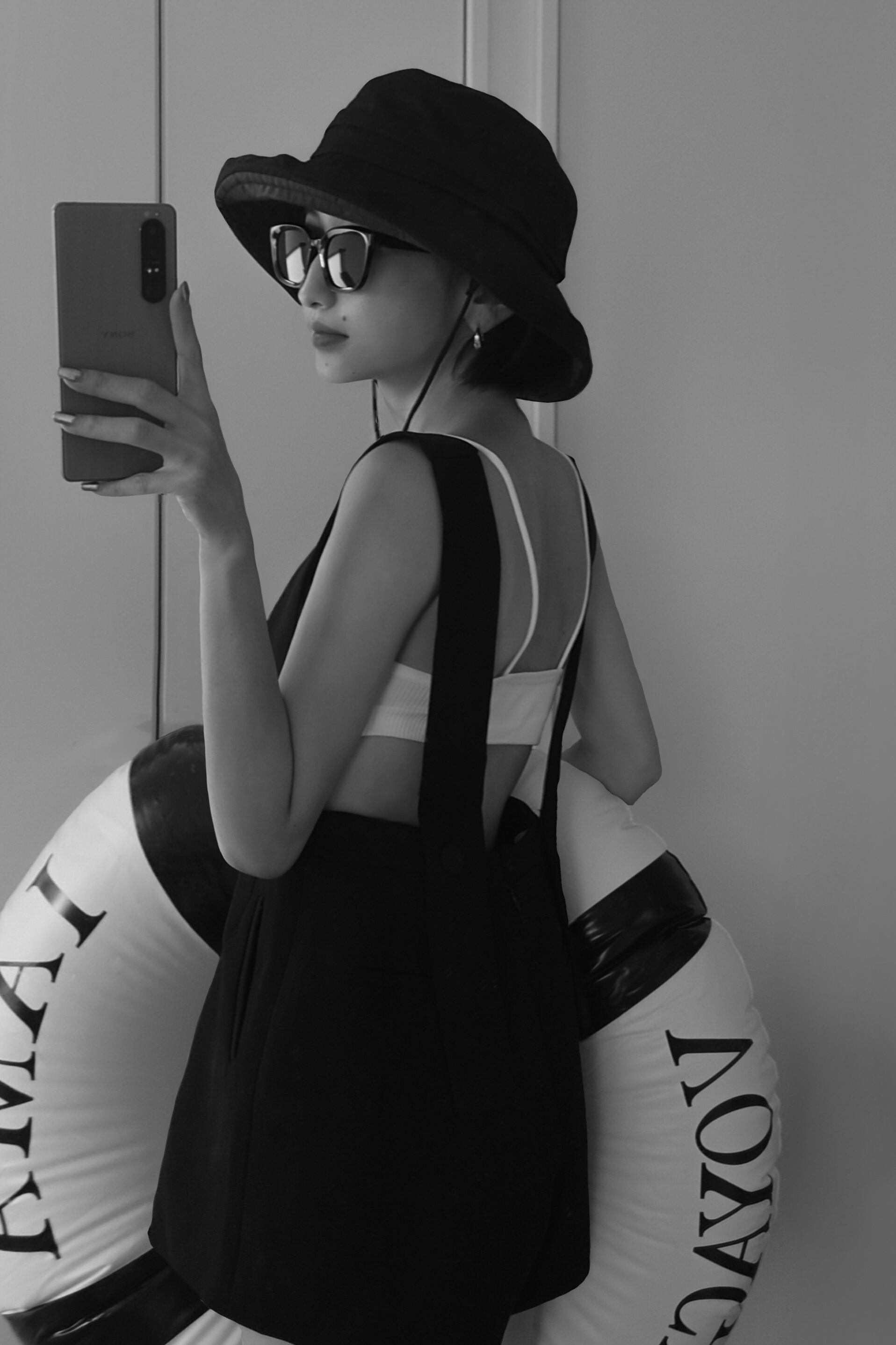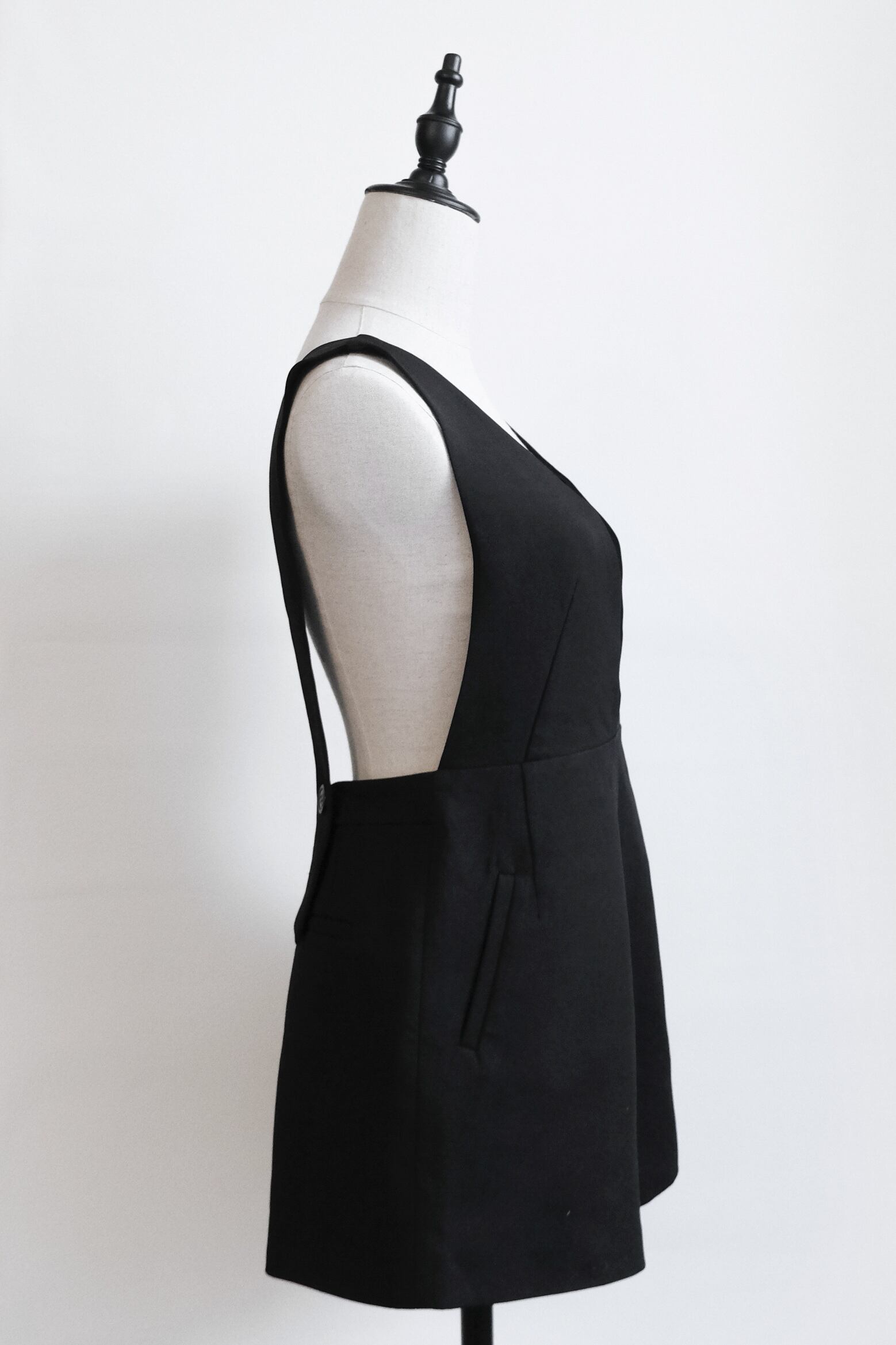 後ろストラップは3段階で調節でき、低身長さんから高身長さんまで幅広く対応。