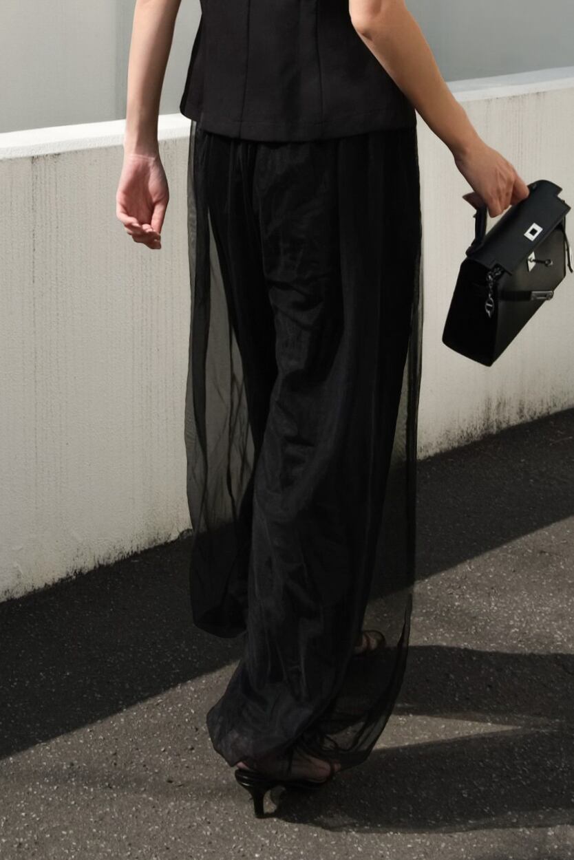 歩くたびにふわっと揺れる、軽やかなチュール素材が魅力の主役級ボトム。