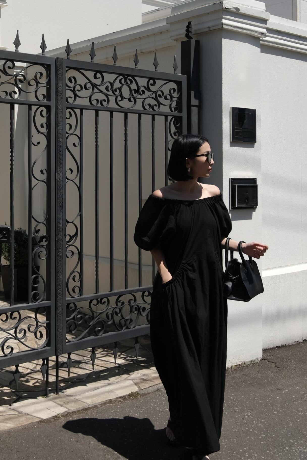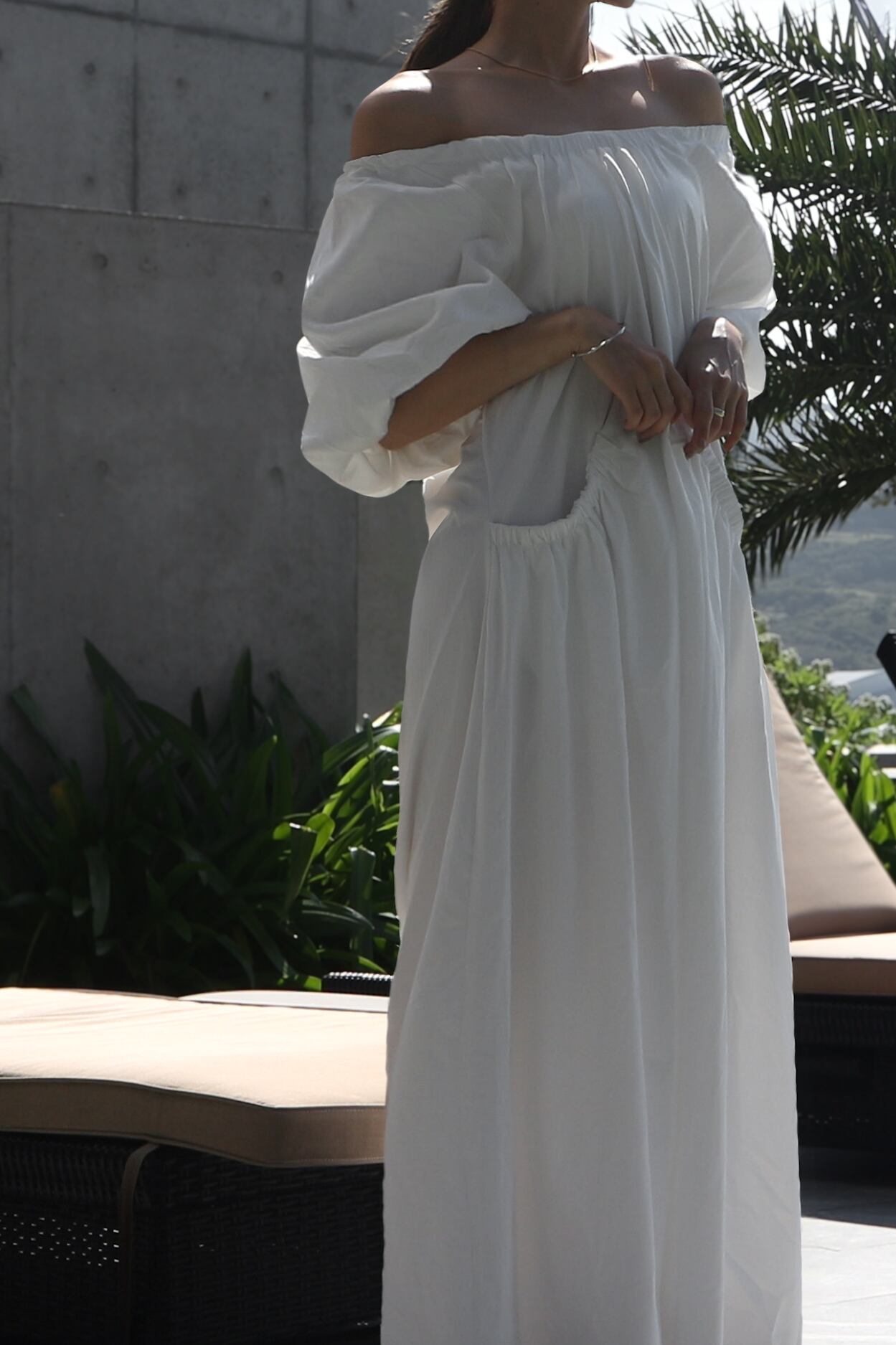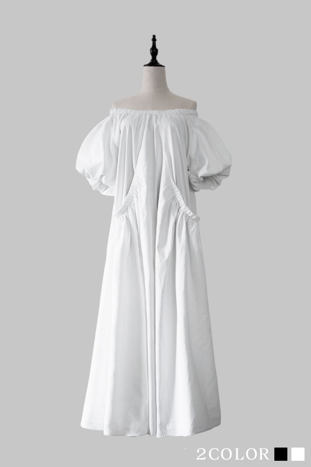 肩を落とせばデコルテが美しく映えるオフショルダーとしても楽しめる2WAYデザイン。