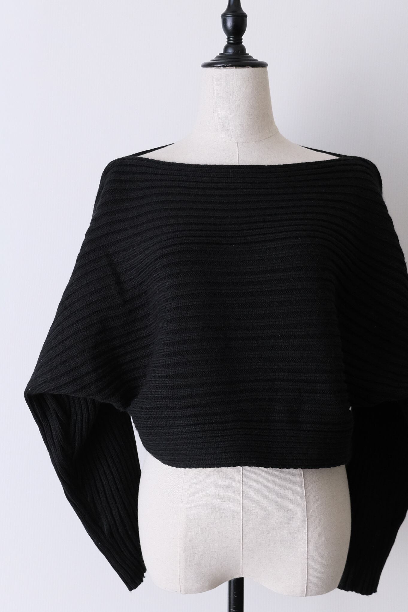 トップスはボートネックと程よいゆとりで、抜け感を演出します。