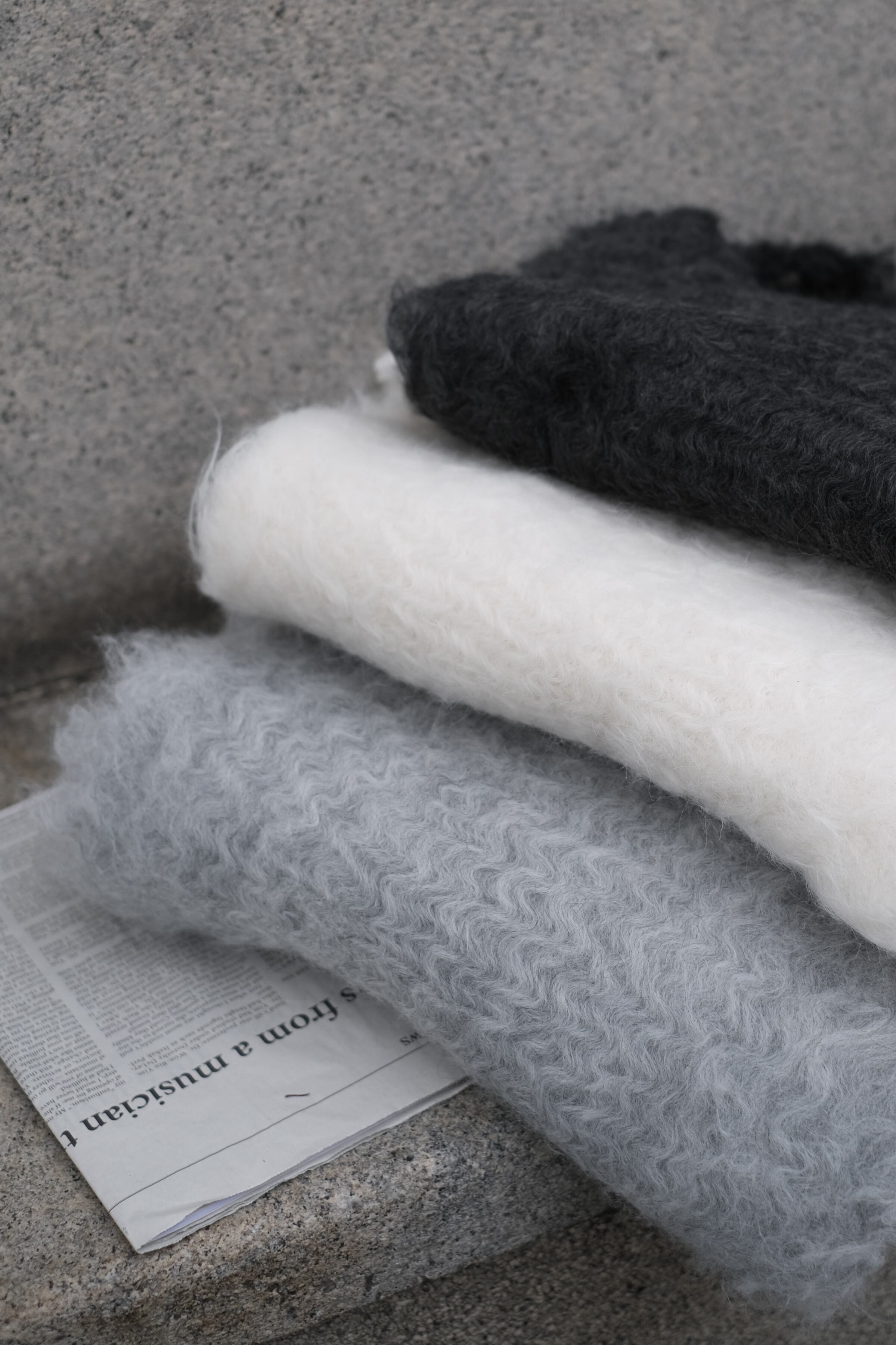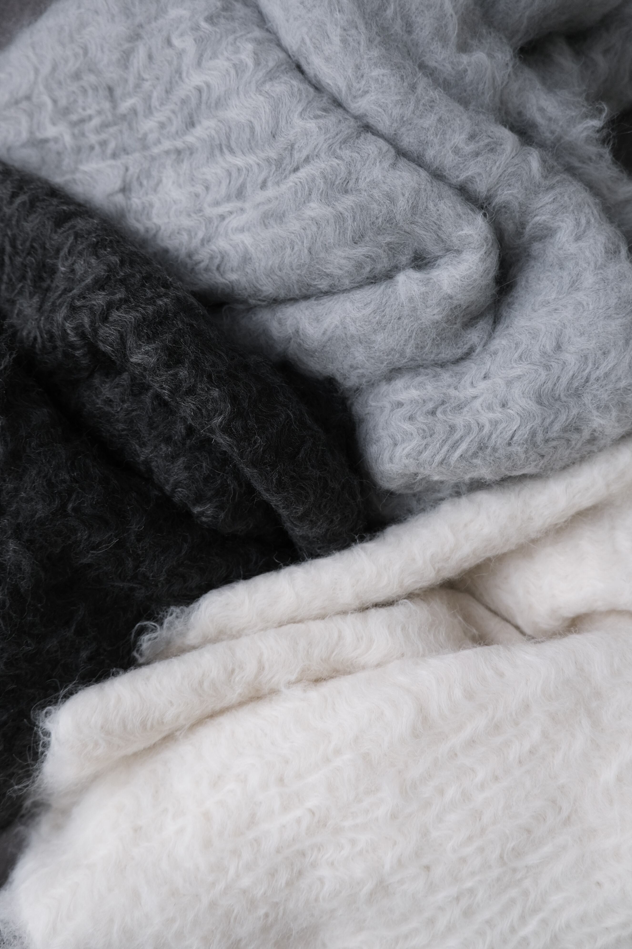 シャギーニットのような毛足が表情豊かな Fluffy Volume マフラー。