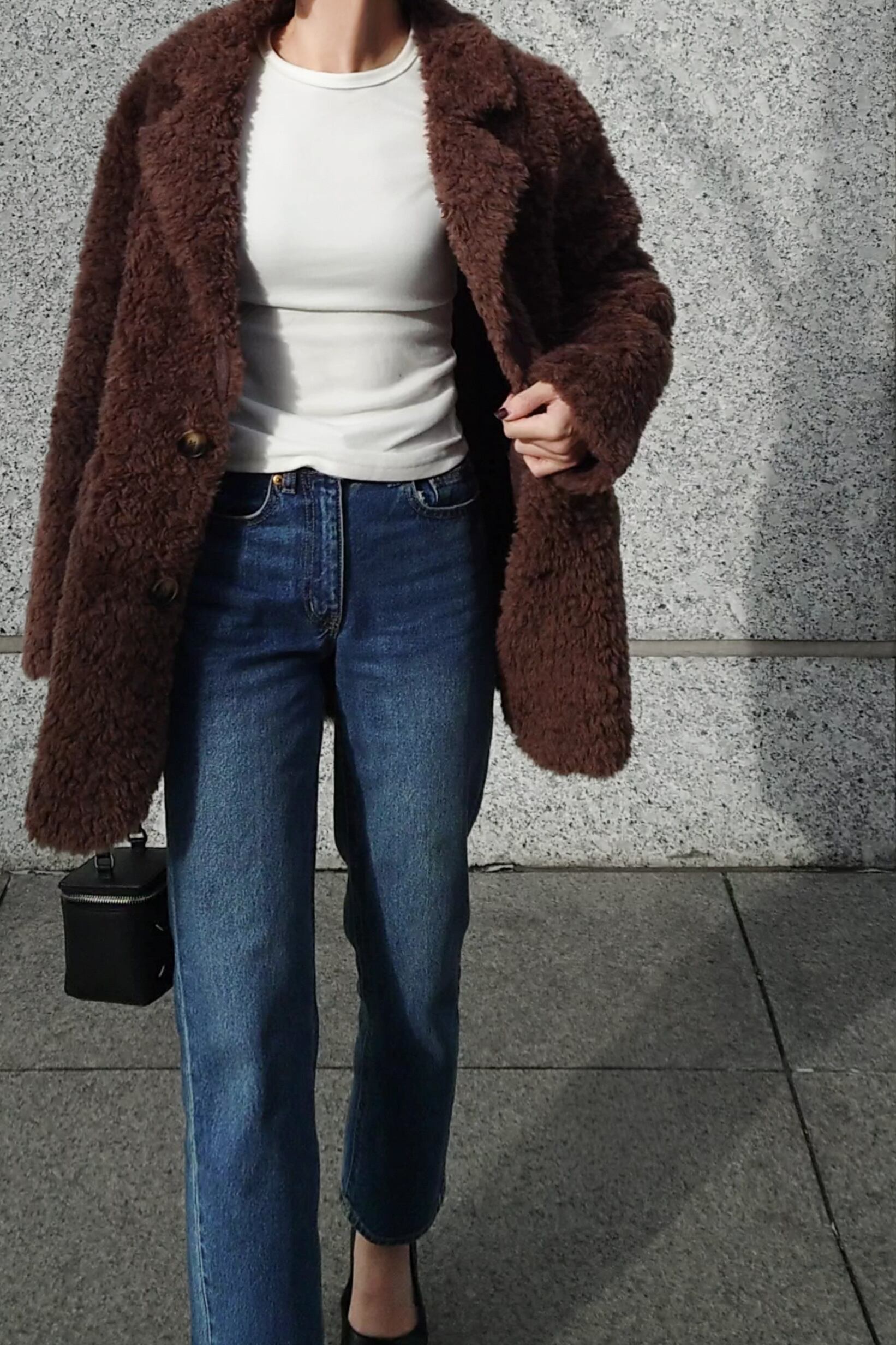 程よい毛足のボアが空気を含み、見た目以上に暖かく、